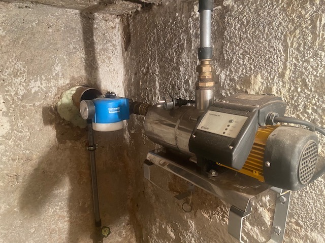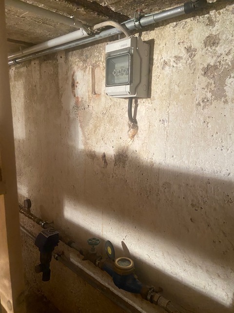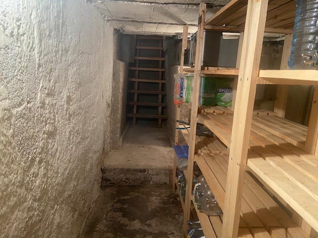 Den Keller kann man vom Hausflur aus begehen. Im Keller (ca. 7 m²) befindet sich neben den Hausanschlüssen (Strom und Wasser) der Wasserumschalter (von Stadtwasser auf Zisternen-Wasser-Nutzung, Pumpensystem, doppelte Verrohrung, Zisterne 6000 l Fassungsvermögen). So spart der Eigentümer das Stadtwasser für WC, Waschmaschine und Dusche. Ebenfalls im Keller ist der Wasserboiler (Strom) für das Warm-Wasser fest installiert.