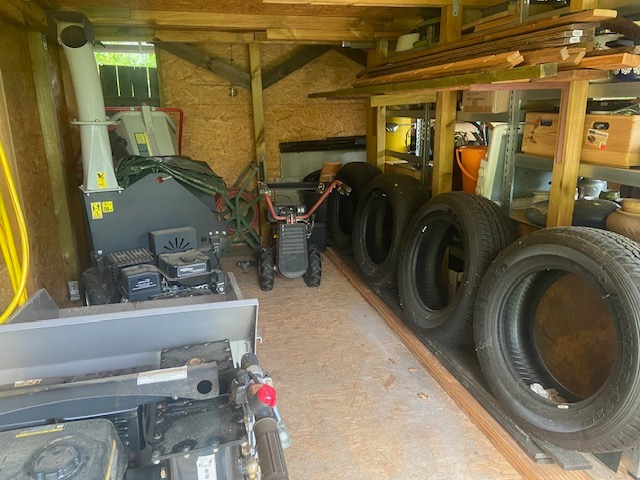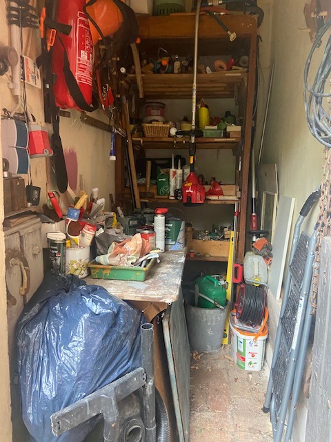 Ein kleiner Abstellraum, nur vom Garten aus zu begehen, beherbergt die Gartengeräte und den Starkstromanschluss. Die Wärmepumpe (Bj. 2013, Fa. frigoline) sorgt für wohlige Wärme, wenn es draußen mal stürmt und schneit…