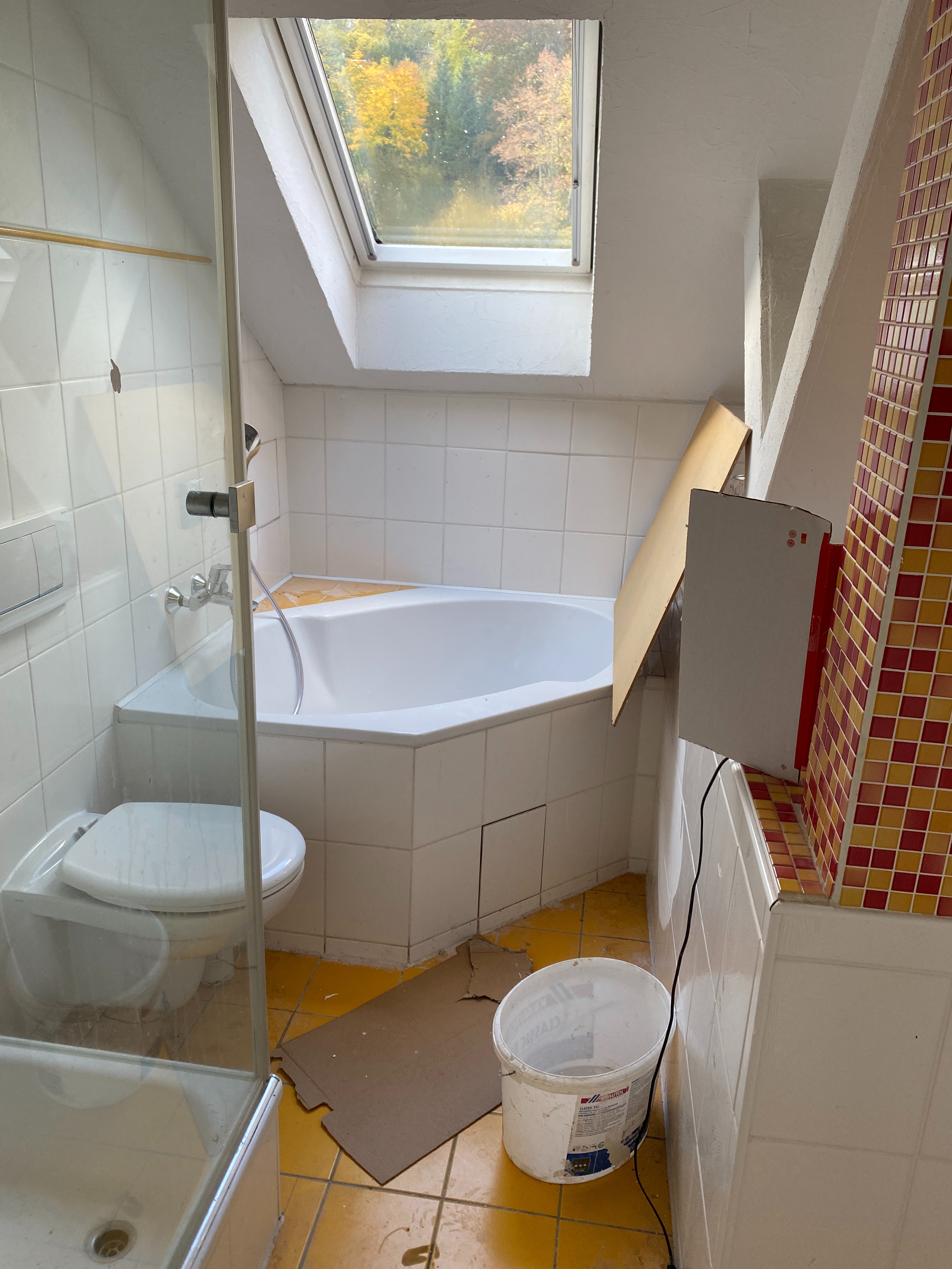 - Ausstattung des Bades Fenster, Badewanne, Dusche