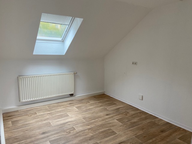 Empfangen wird man durch einen sehr großzügigen Wohnungsflur, welcher alle 4 Zimmer, Küche und Bad (Badewanne, 2 Dachfenster, Fliesen, ca. 8 m²)miteinander verbindet (kein Durchgangszimmer).