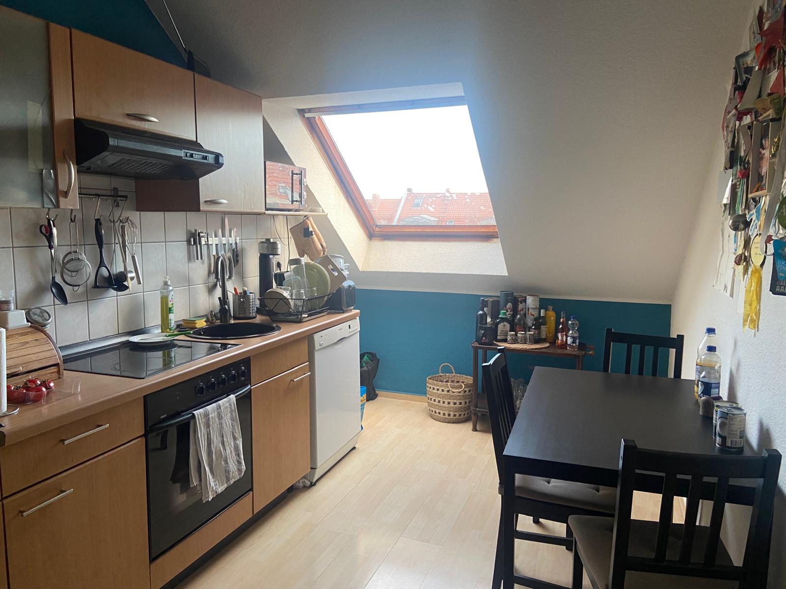Die Wohnung wird frisch renoviert an die neuen, glücklichen Mieter übergeben, durch die überdurchschnittlich großen Dachflächenfenster ist die Wohnung sehr hell.