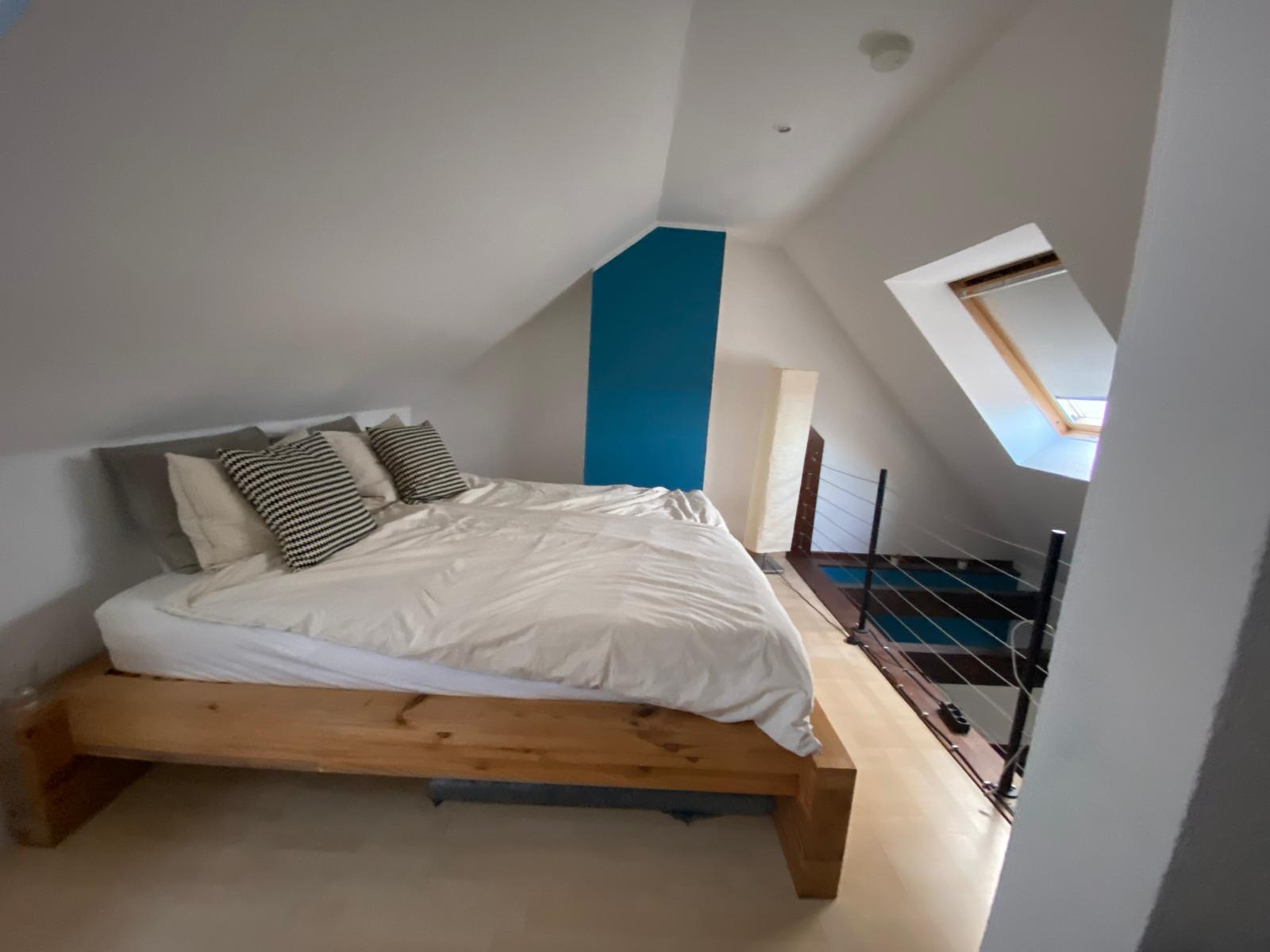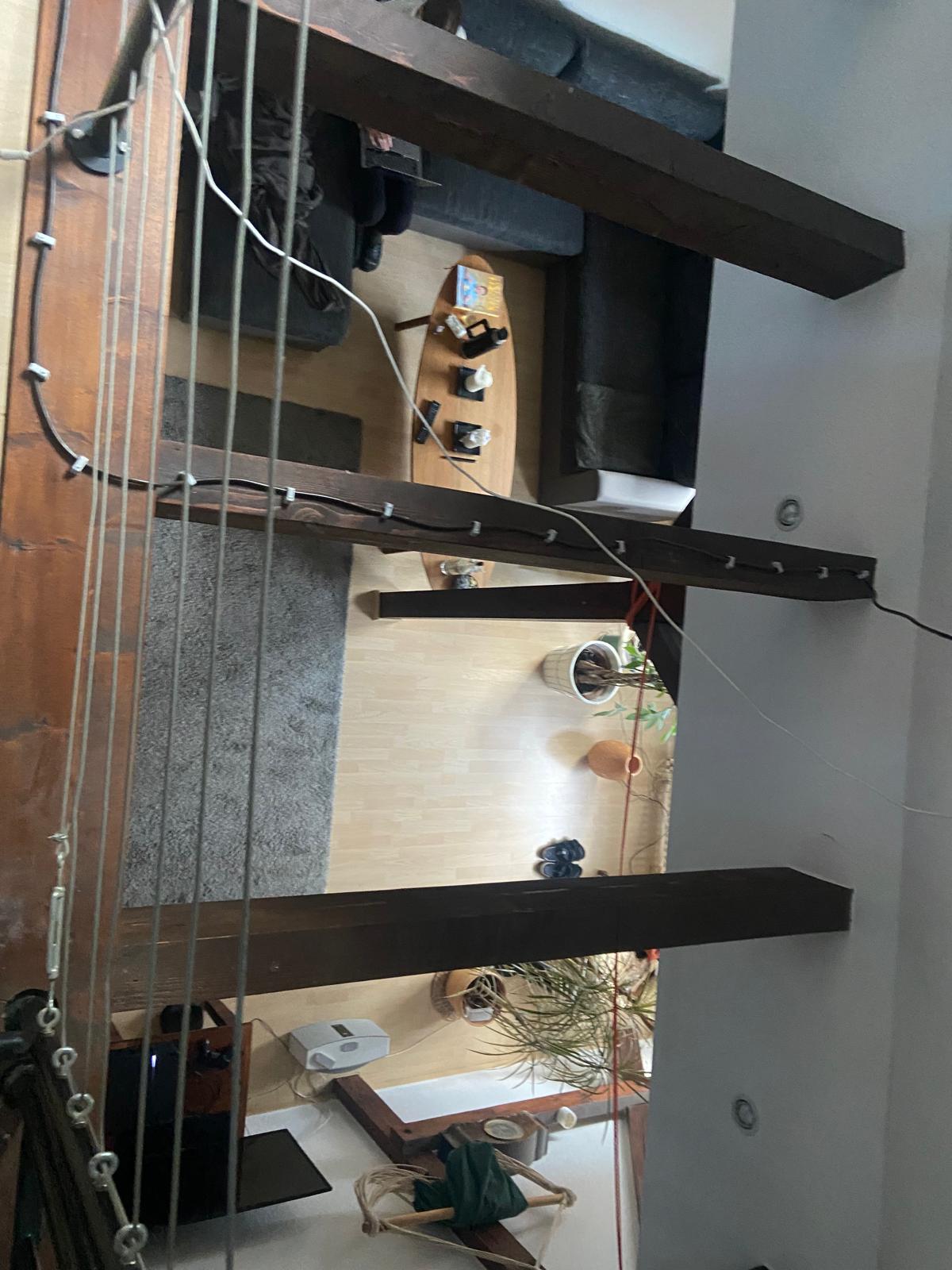 Im großzügigen, ca. 35 m² großen Wohnraum (2 große Dachflächenfenster, Laminat, offene Balken, nach oben offen zur Galerie), hat man einladend Platz für einen großen Esstisch und die Wühlfühl-Wohnlandschaft – eine Wohnung zum Vorzeigen und Leben mit Komfortgefühl. Hier befindet sich ebenfalls die Wendeltreppe, die in die Galerie führt – vorzugsweise als Schlafbereich (ca. 15 m² Grundfläche, 1 Dachflächenfenster, 2 schräge Wände) genutzt. Die offene Gestaltung der Galerie mit Schlafbereich lässt das Herz eines jeden Bewohners höherschlagen – es ist ein Wohngefühl von Weite und Licht.