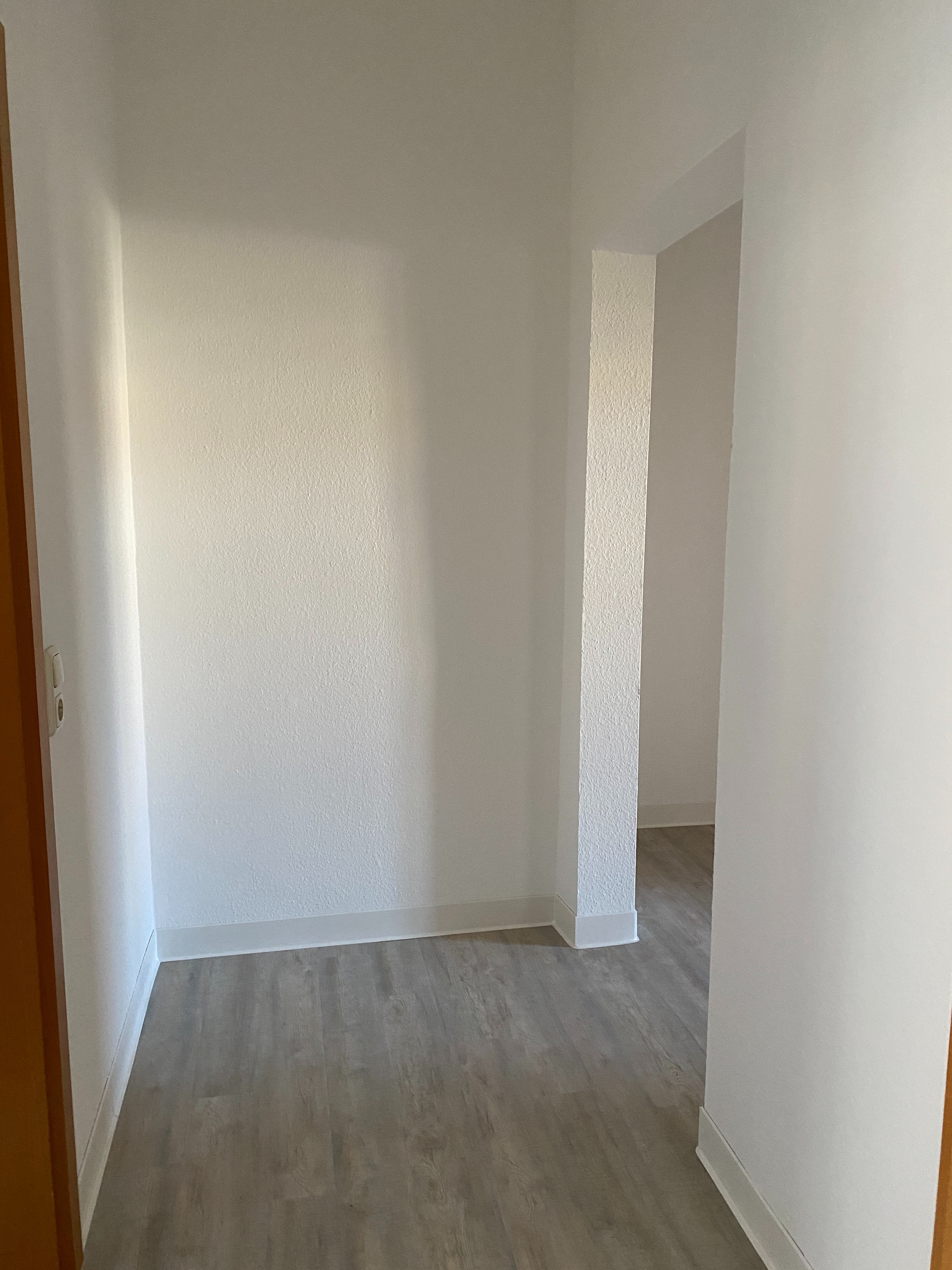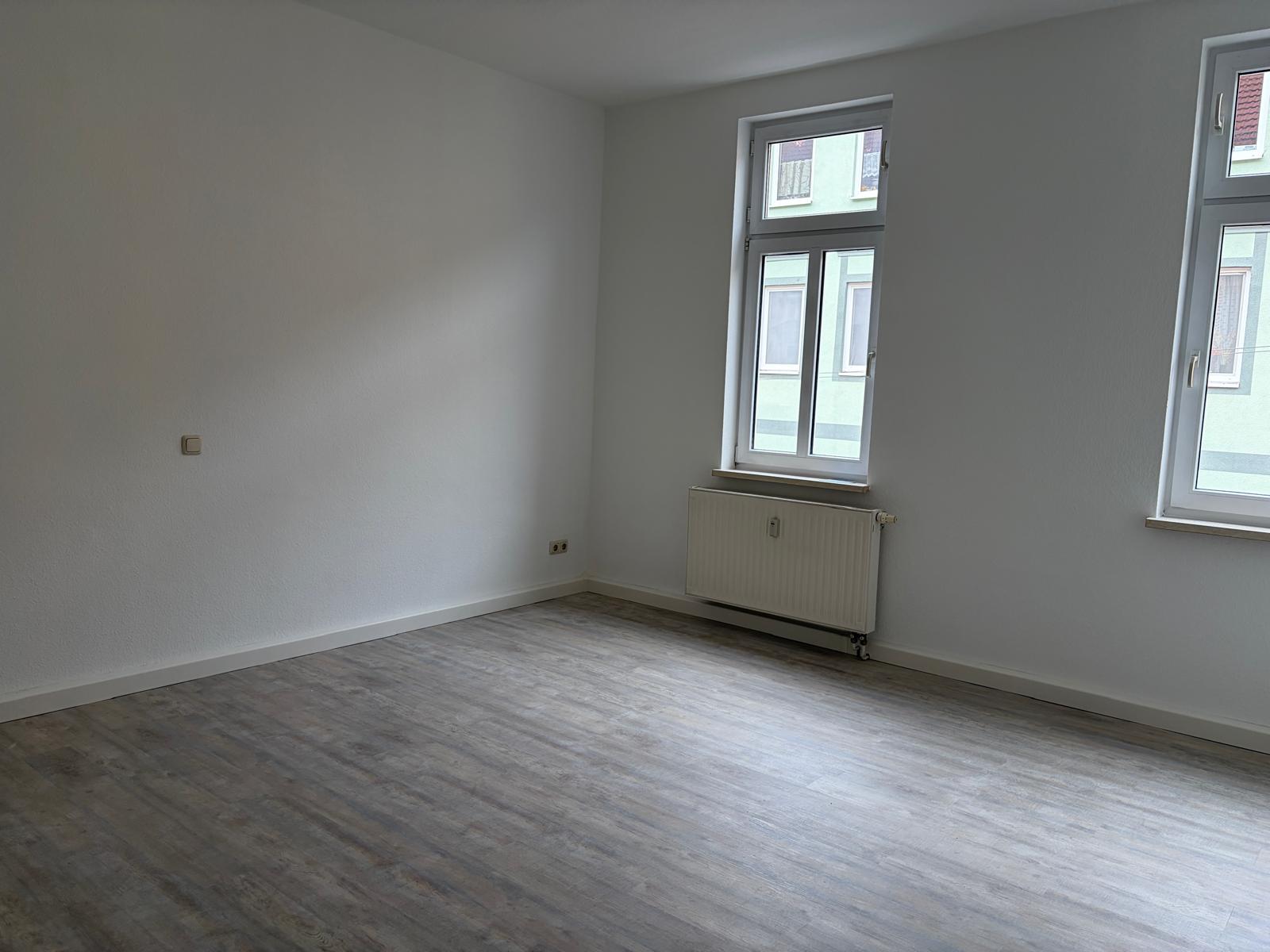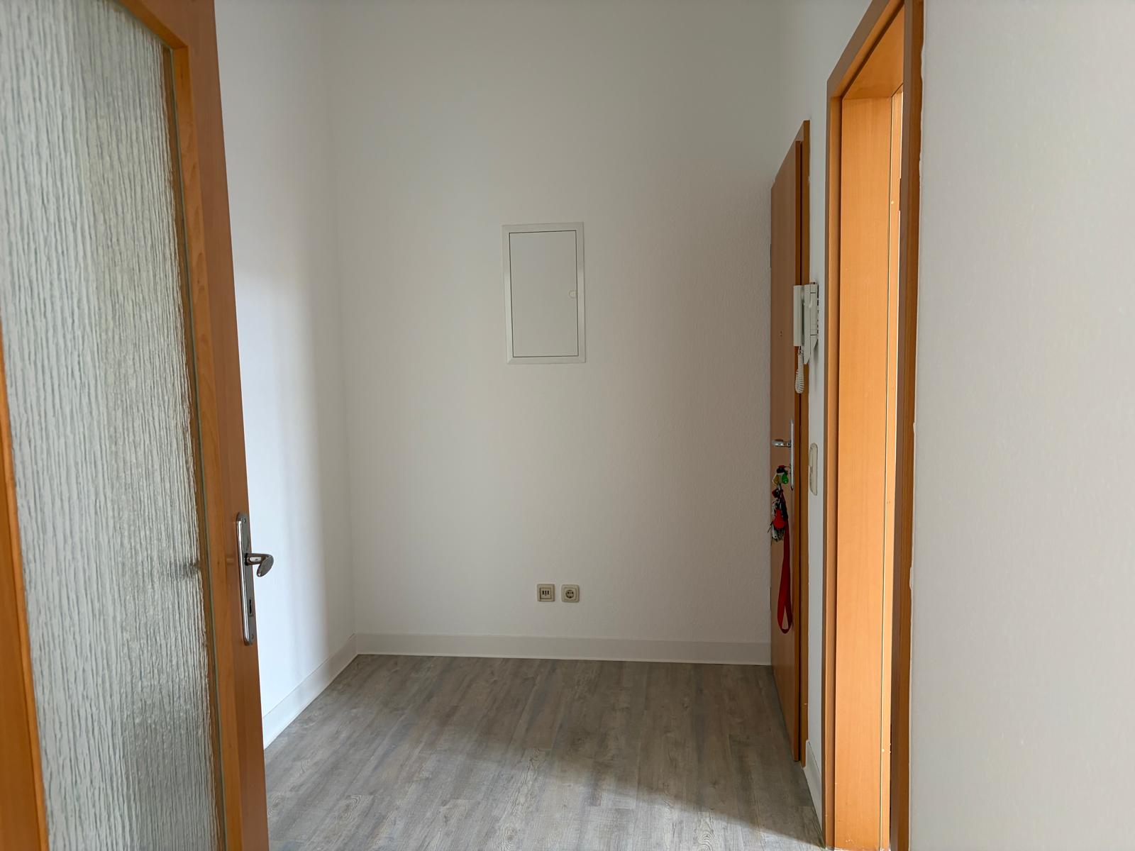 Die Wohnung ist komplett saniert. Alle Räume sind weiß gestrichen und haben ein Fenster.