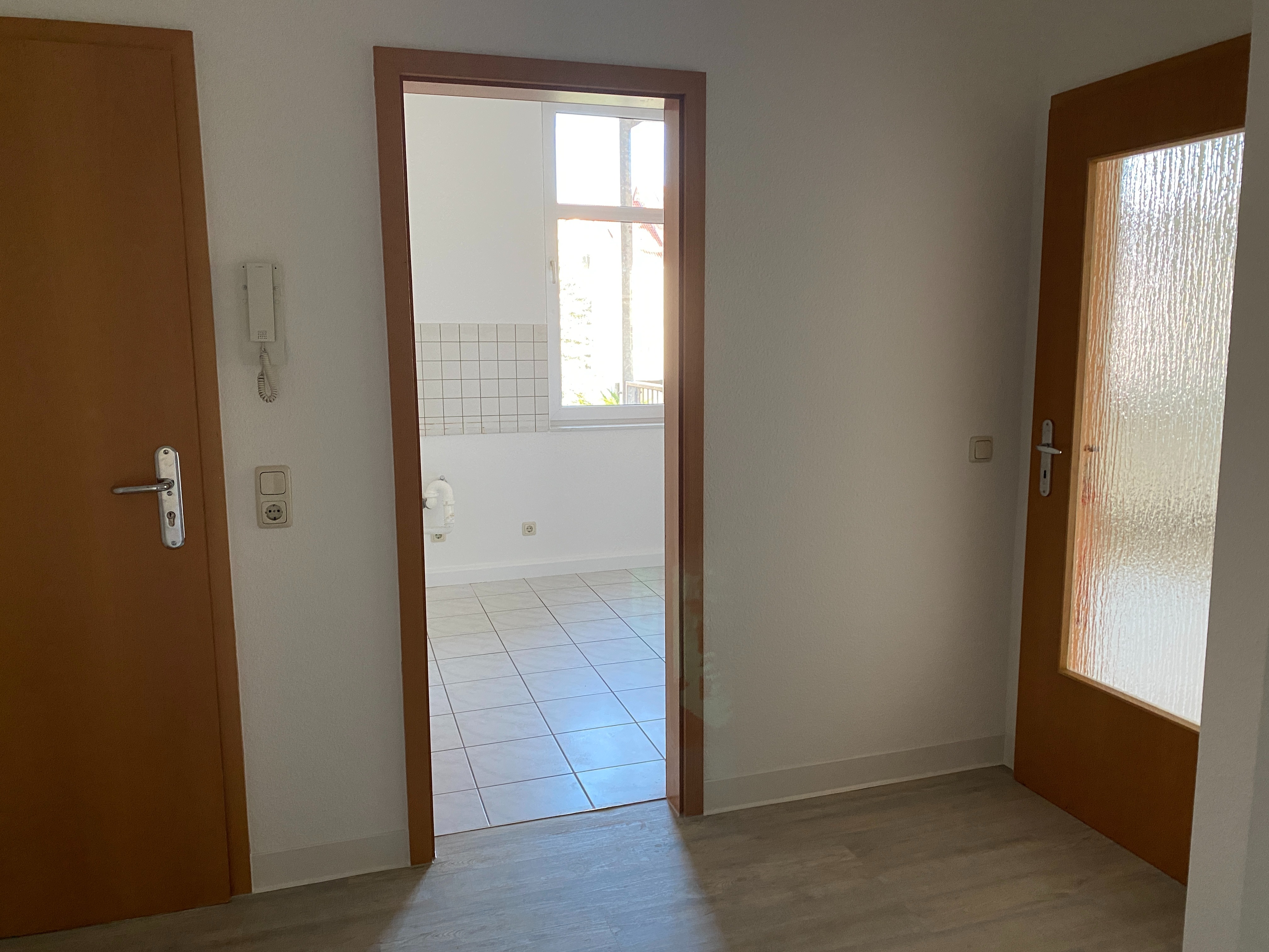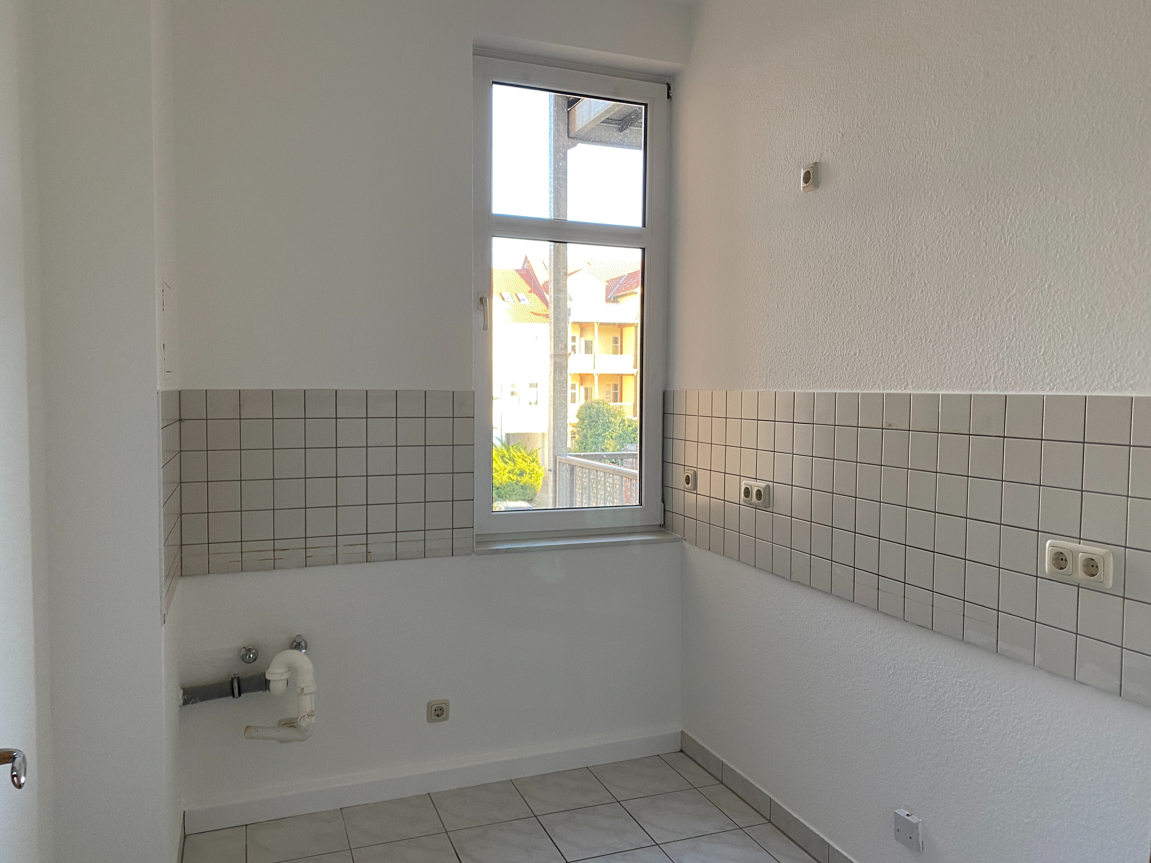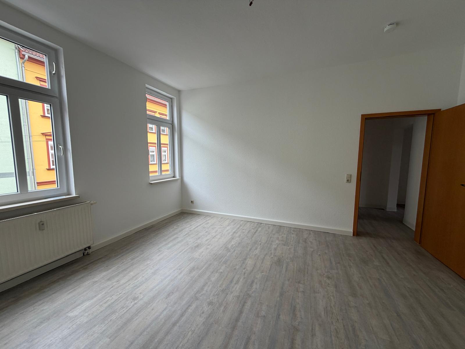 Die Wohnung ist komplett saniert. Alle Räume sind weiß gestrichen und haben ein Fenster.