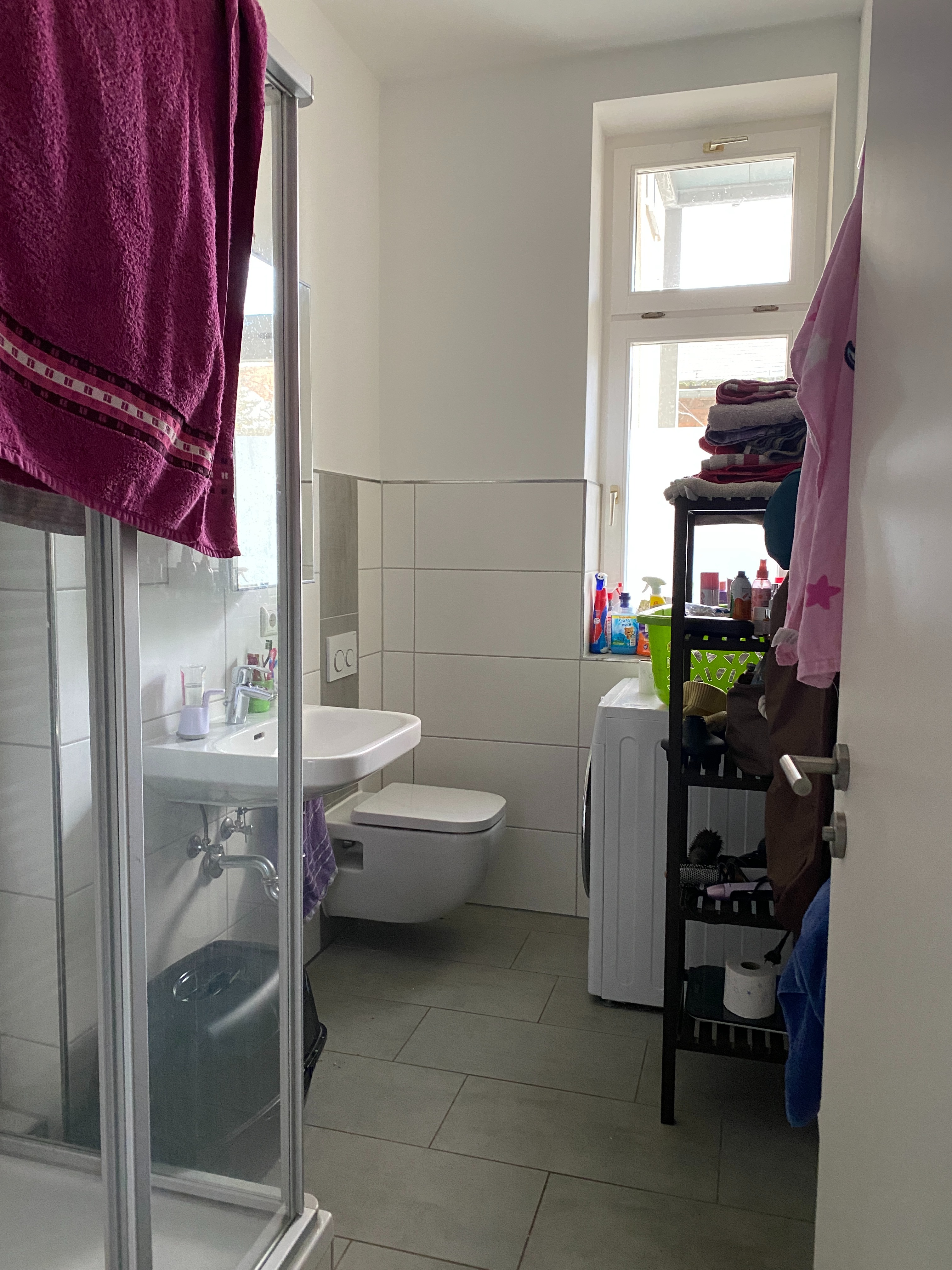 - Ausstattung des Bades Fenster, Dusche