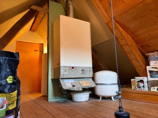 Der Spitzboden ist beghbar – nicht ausgebaut, hier befindet sich die Heizung (Gaseetagenheizung Baujahr ca. 2001, turnusgemäße Wartung) und es bietet sich hier Abstellfäche.