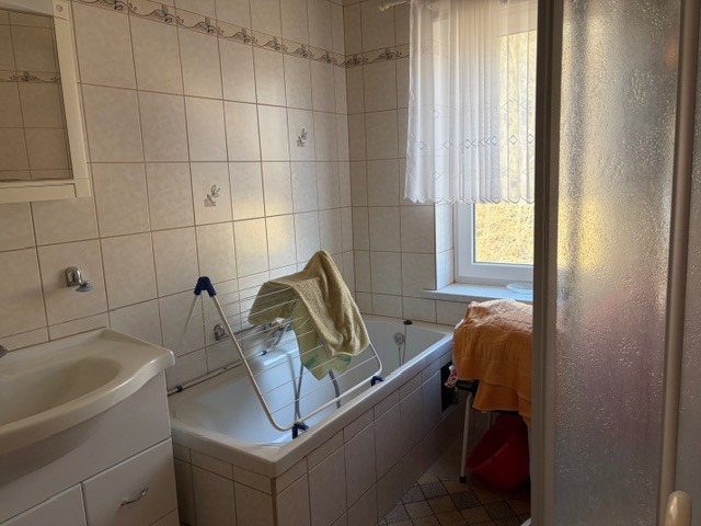 - Ausstattung des Bades Badewanne, Dusche, Fenster