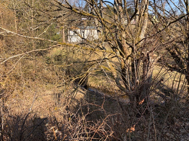 Das Grundstück unterteilt sich in Hausgrundstück (169 m²), das Hofgrundstück (2620 m²) und ein Grundstück mit dem Bungalow (2560 m²). Vor dem Haus zum Flüsschen hin ist ein weiteres Grundstück mit ca. 125 m², welches aber derzeit nicht gnutzt wird.
