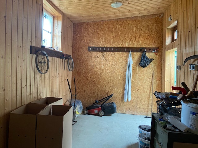 Auf das Grundstück gelangt man auch mit dem PKW durch die Zufahrt. Über der Zufahrt wurde ca. 1958 weiterer Wohnraum geschaffen, somit ist im Obergeschoss mehr Fläche zur Wohnnutzung als im Erdgeschoss. Die Zufahrt wurde überbaut, zwei weitere Zimmer konnten somit von der Familie genutzt werden.