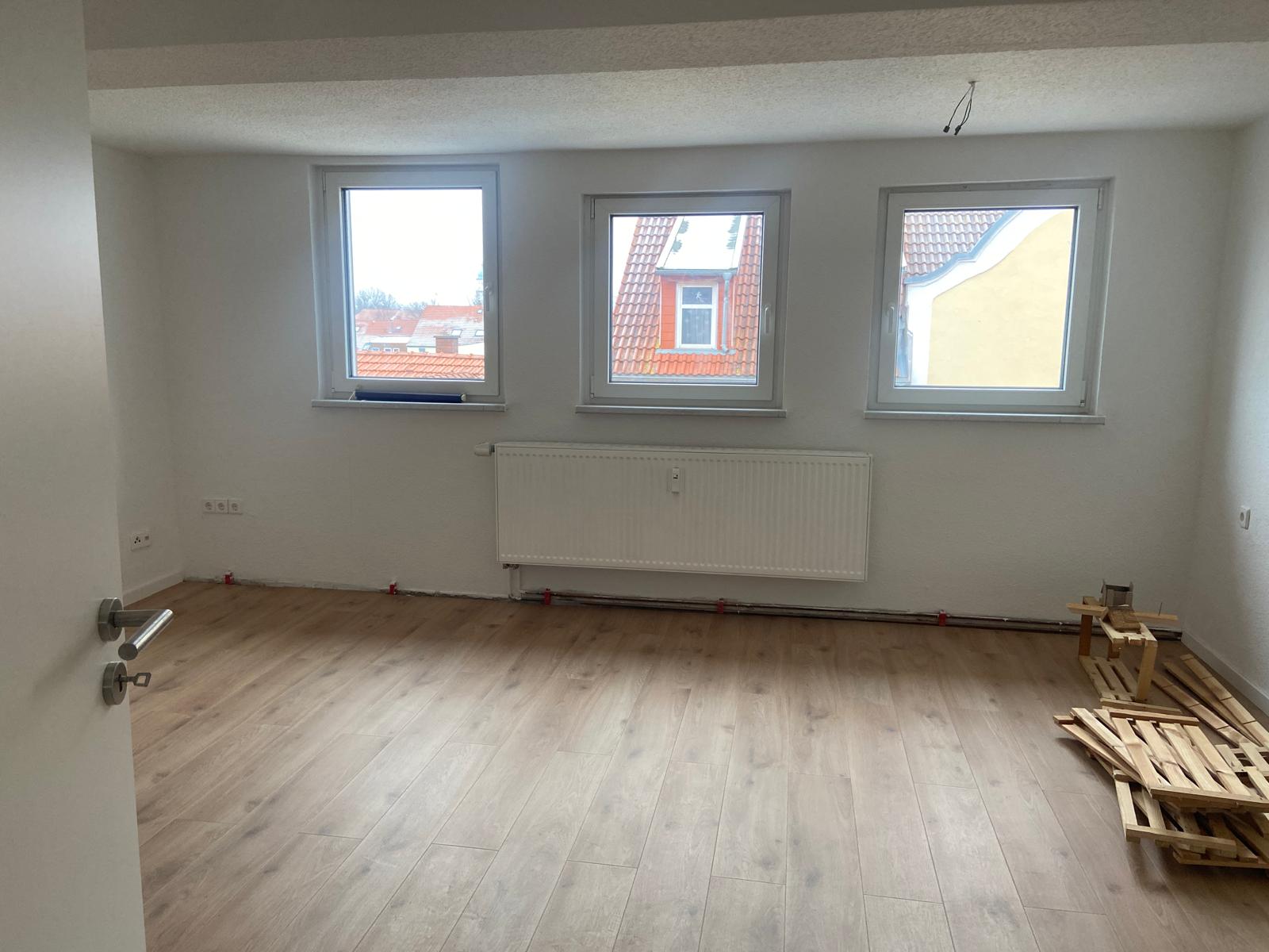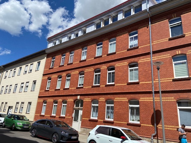 Das 8-Familienhaus um 1900 gebaut, mit roten Klinkersteinen versehen – sehr ansprechende Fassade… so geht es weiter… Den Besucher empfängt der helle, frisch sanierte Hausflur, nach dem Treppensteigen bis in das 3. Obergeschoss wartet eine helle, frisch ausgebaute 2-Raum-Wohnung, Bad mit Dusche und Fenster (ca. 4,3 m²), die Küche (ca. 17 m²) liegt "zum Garten raus". Die Balkontür lässt Licht rein und erfreut jeden Besucher. Das Wohnzimmer liegt zur Straße raus, verfügt über drei Fenster. Das Schlafzimmer verfügt über einen weiß gestrichenen Balken mit Ablage, sehr individuell ist unbedingt vorzeige wert, liegt ebenfalls zur Straße hinaus, doch von den vorbeifahrenden Autos hört man hoch oben nichts.