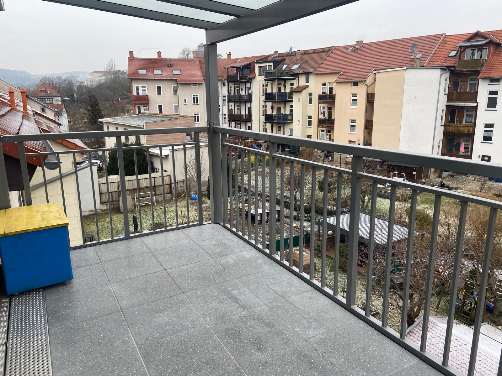Einzug in eine frisch ausgebaute 2-Raum-Wohnung, mit einen neuen Balkon, hoch über den Dächern der Stadt…