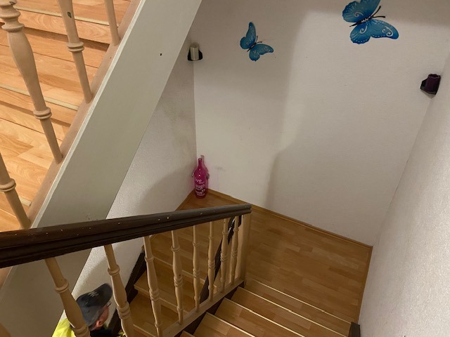 einseitigem Handlauf, Zugang zum Dachboden über eine Leiter von der DGWohnung